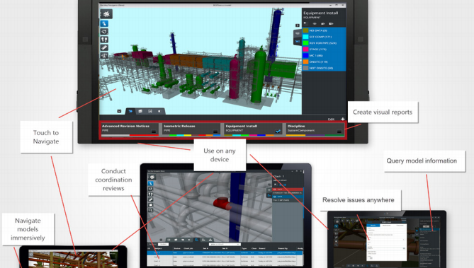 使用 Navigator,您可以在施工开始前更清晰地洞察项目中潜在的协调问题,降低工地现场问题造成巨大损失的风险。这种洞察力的增强,是因为您可以利用 Navigator 的功能提高基于模型的信息的可视性,以虚拟的方式深入其中审视和理解设计,在模型的背景环境下找到关键的设计信息,并更快速全面地分析和理解模型内各种关系的复杂性。Navigator 使您能够: