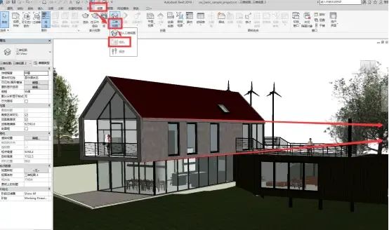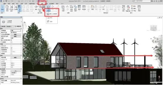 使用透视和正交三维视图来显示模型,并添加和修改建筑图元。
